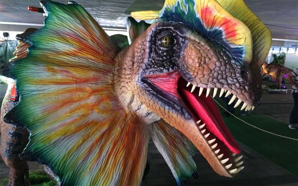 Wir zeigen sie fast alle: den Spinosaurus, den größten Raubsaurier der je gelebt hat; den Diplodocus, riesige 22 Meter lang; den Brachiosaurus mit seinem immerhin fünf Meter langen Hals. Natürlich darf der T-Rex, der Tyrannosaurus Rex, nicht fehlen, den alle allein schon aus “Jurassic Park” kennen, oder die deutlich kleineren - aber flinken - Velociraptoren. Gerade aus dem Ei geschlüpfte Dinobabys können bestaunt werden, Triceratops-Jungtiere und auch Flugsaurier. Viele Dinos bewegen sich und geben Laute von sich, auch wenn natürlich niemand sagen kann, ob sie solche Geräusche tatsächlich von sich gegeben haben. Informative Tafeln zu jedem Dino geben Auskunft über Größe, Ernährung Lebensraum und das Zeitalter, in dem der betreffende Dino gelebt hat. Auch der Frage, warum die Dinos ausgestorben sind und sie überhaupt “Dinosaurier” genannt werden, wird nachgegangen.