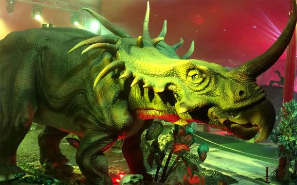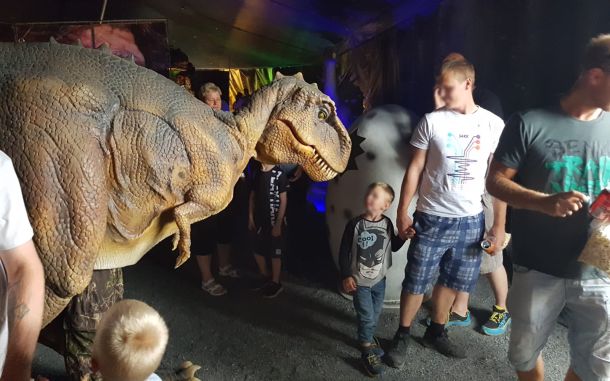 Wir zeigen sie fast alle: den Spinosaurus, den größten Raubsaurier der je gelebt hat; den Diplodocus, riesige 22 Meter lang; den Brachiosaurus mit seinem immerhin fünf Meter langen Hals. Natürlich darf der T-Rex, der Tyrannosaurus Rex, nicht fehlen, den alle allein schon aus “Jurassic Park” kennen, oder die deutlich kleineren - aber flinken - Velociraptoren. Gerade aus dem Ei geschlüpfte Dinobabys können bestaunt werden, Triceratops-Jungtiere und auch Flugsaurier. Viele Dinos bewegen sich und geben Laute von sich, auch wenn natürlich niemand sagen kann, ob sie solche Geräusche tatsächlich von sich gegeben haben. Informative Tafeln zu jedem Dino geben Auskunft über Größe, Ernährung Lebensraum und das Zeitalter, in dem der betreffende Dino gelebt hat. Auch der Frage, warum die Dinos ausgestorben sind und sie überhaupt “Dinosaurier” genannt werden, wird nachgegangen.